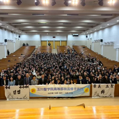 本校の英語教育は、⼼が通じる体験を通して動機付けされます。ネイティブ教師4⼈やアジアやアフリカ圏からのゲストの英語に触れながら、国際体験として語学を学びます。