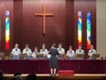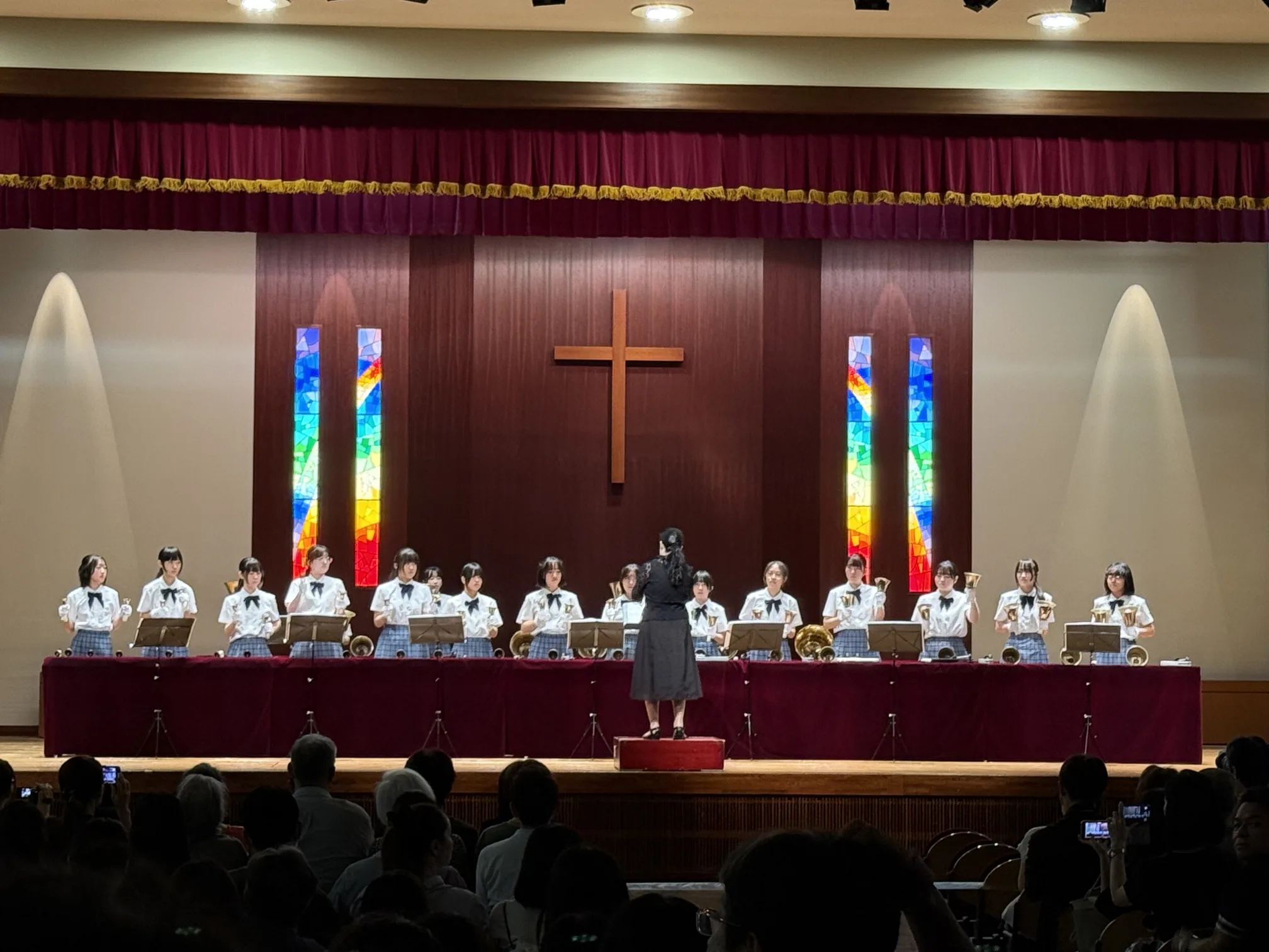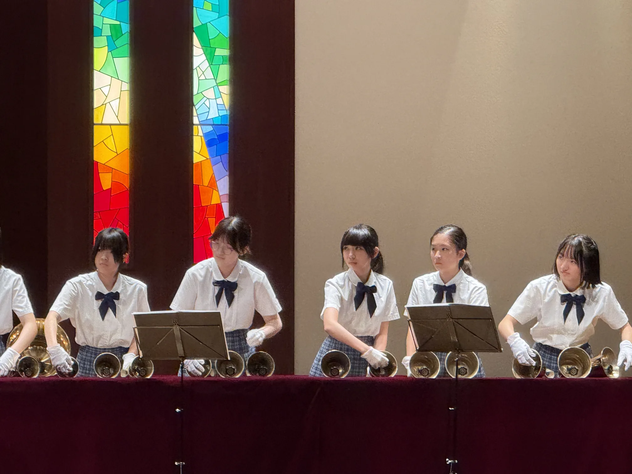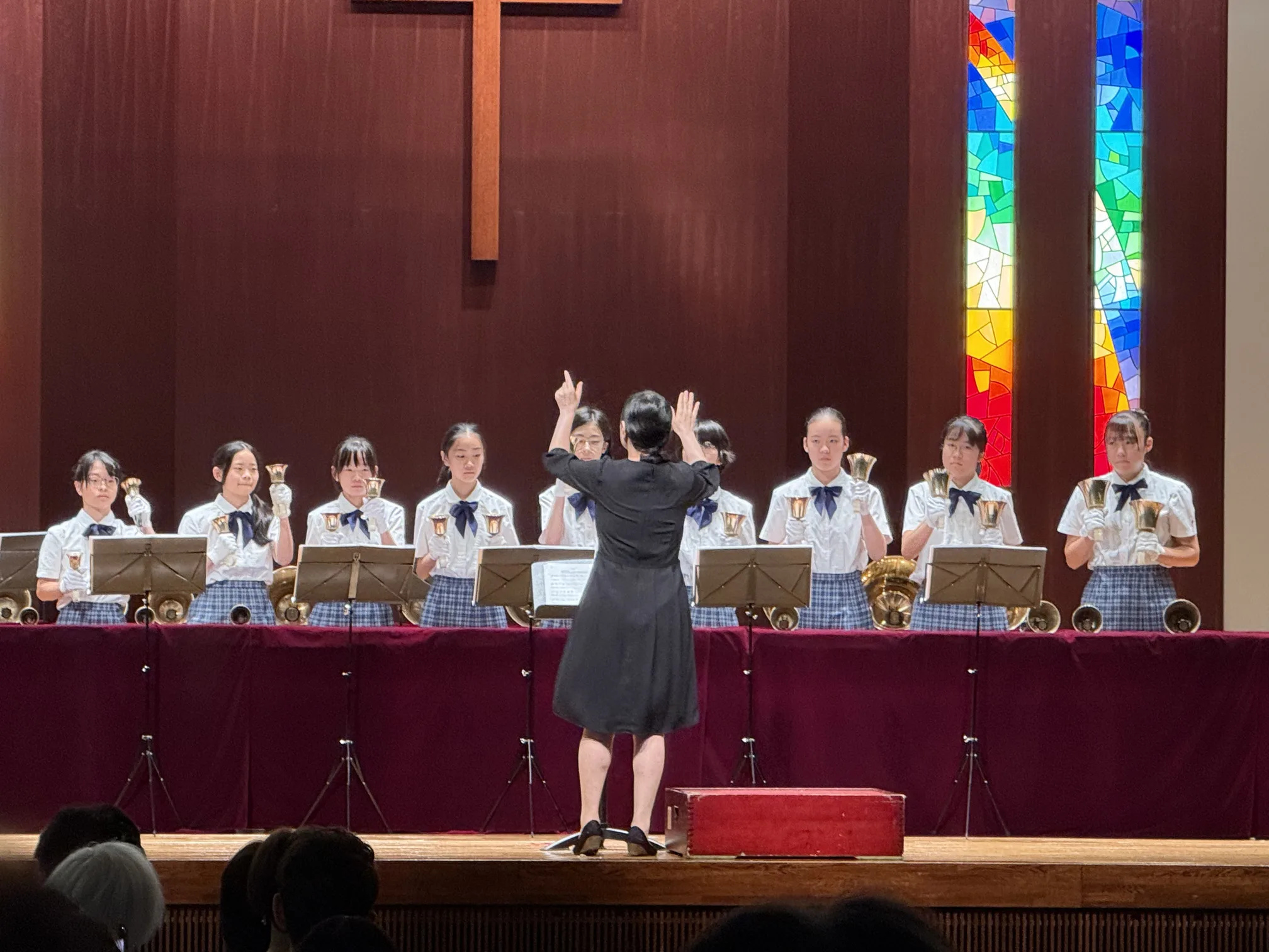ハンドベル部は「雪だるま作ろう」「シャイニングピース」など全7曲、40分のステージを2回行いました。たくさんのお客様に聴いていただく中で、精一杯演奏することができとても良かったです。次は感謝祭礼拝、クリスマス礼拝、クリスマスコンサートに向けてがんばります。