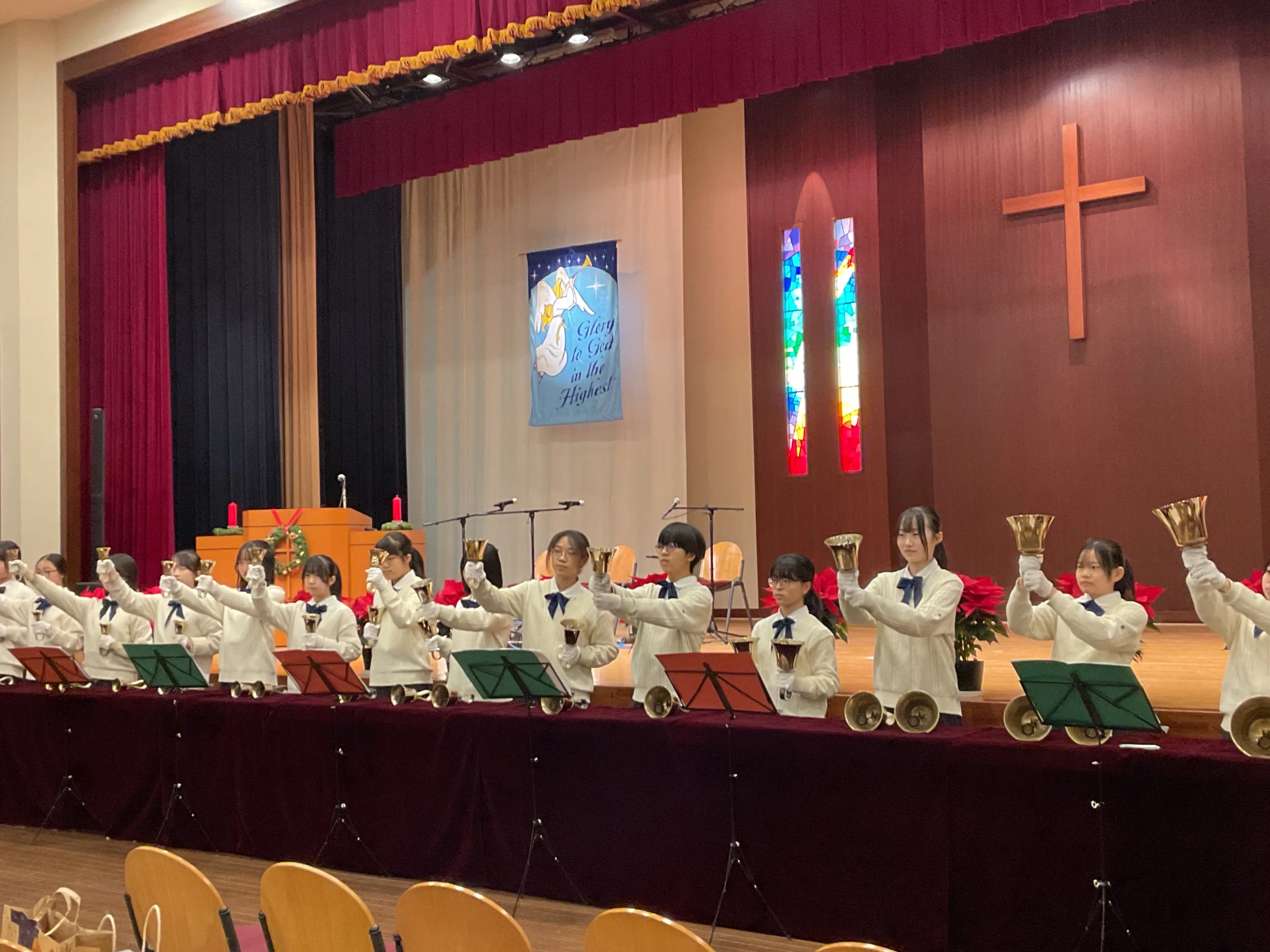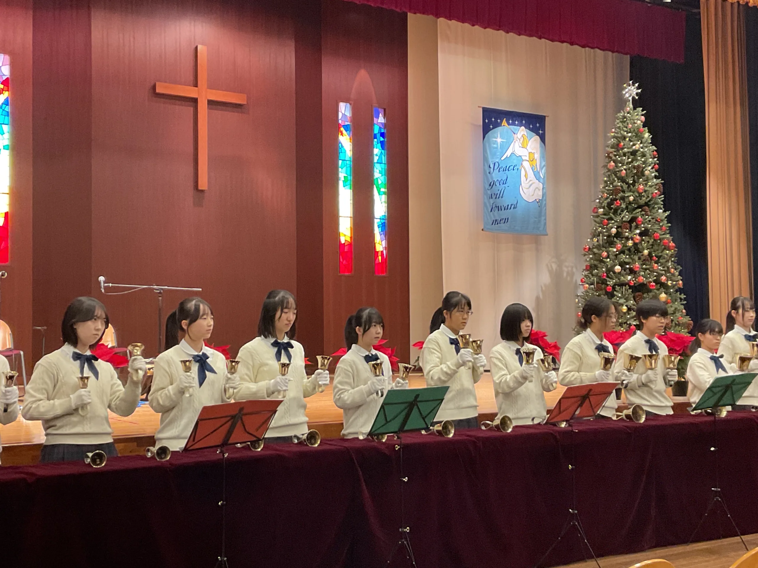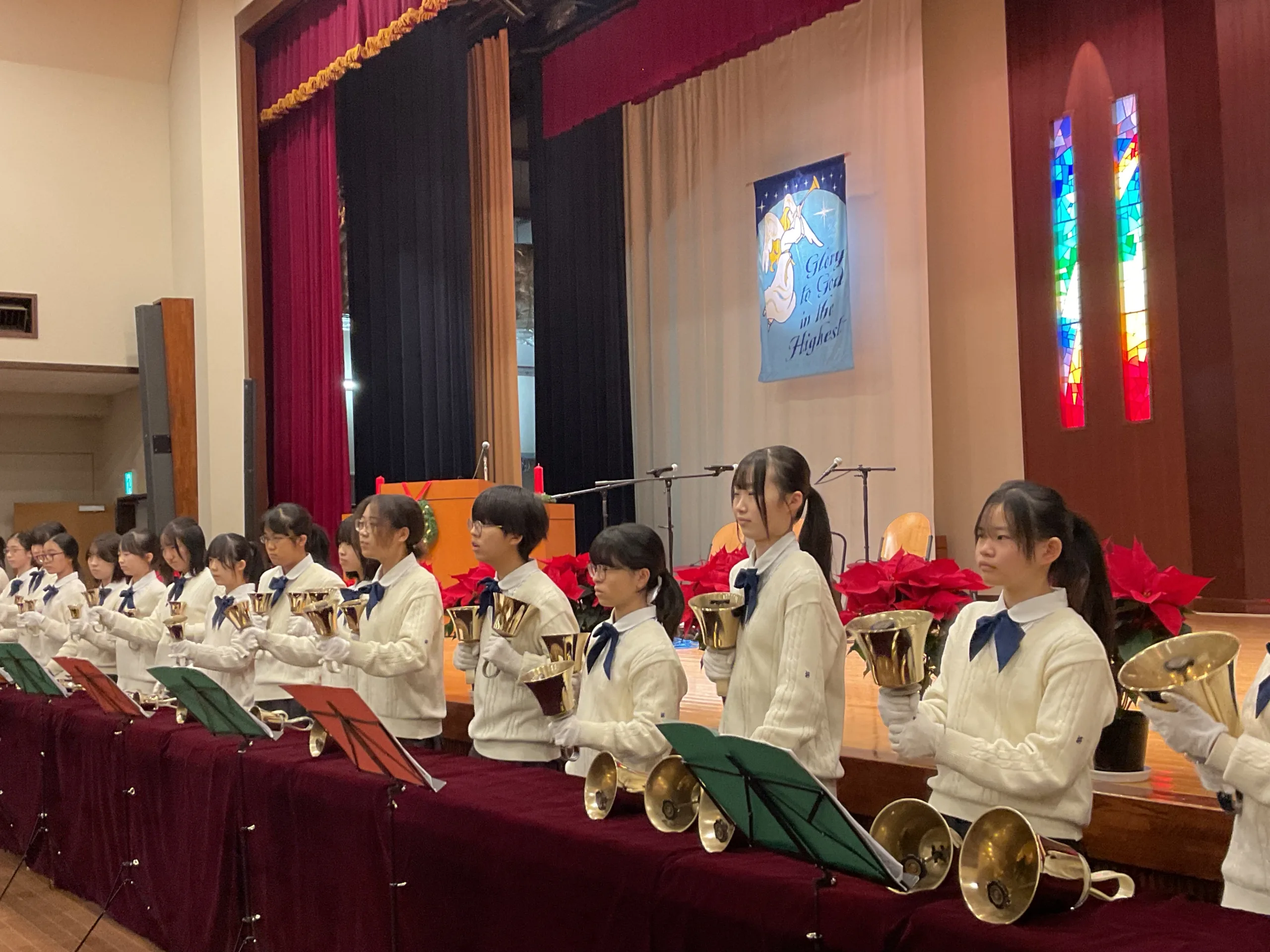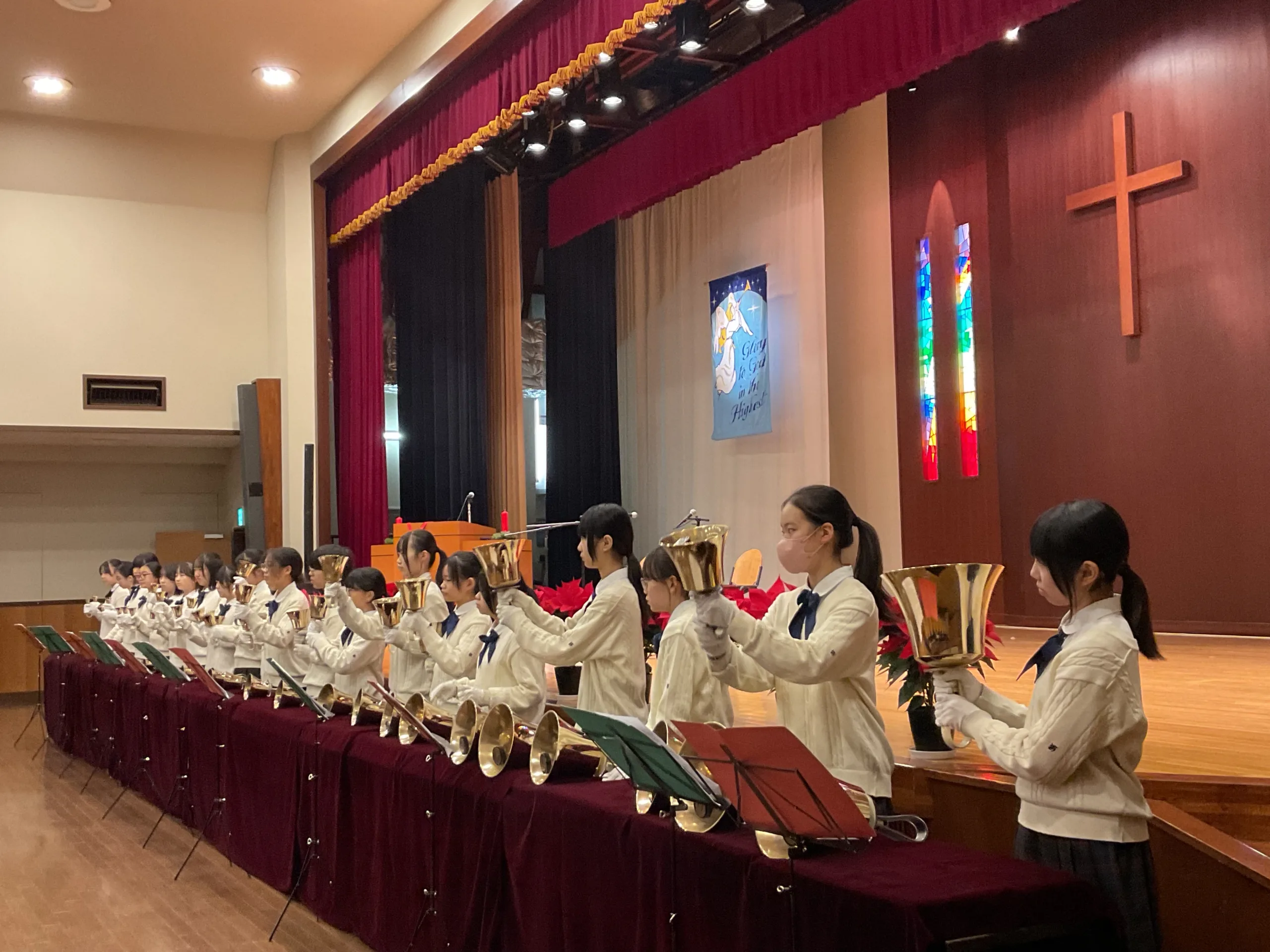 12/6クリスマス賛美礼拝、リハーサルと本番の様子をご覧ください。中等部20名でクリスマスキャロルのメドレーを演奏しました。卒業生やPTAの皆様に喜んでいただき良い賛美の時となりました。