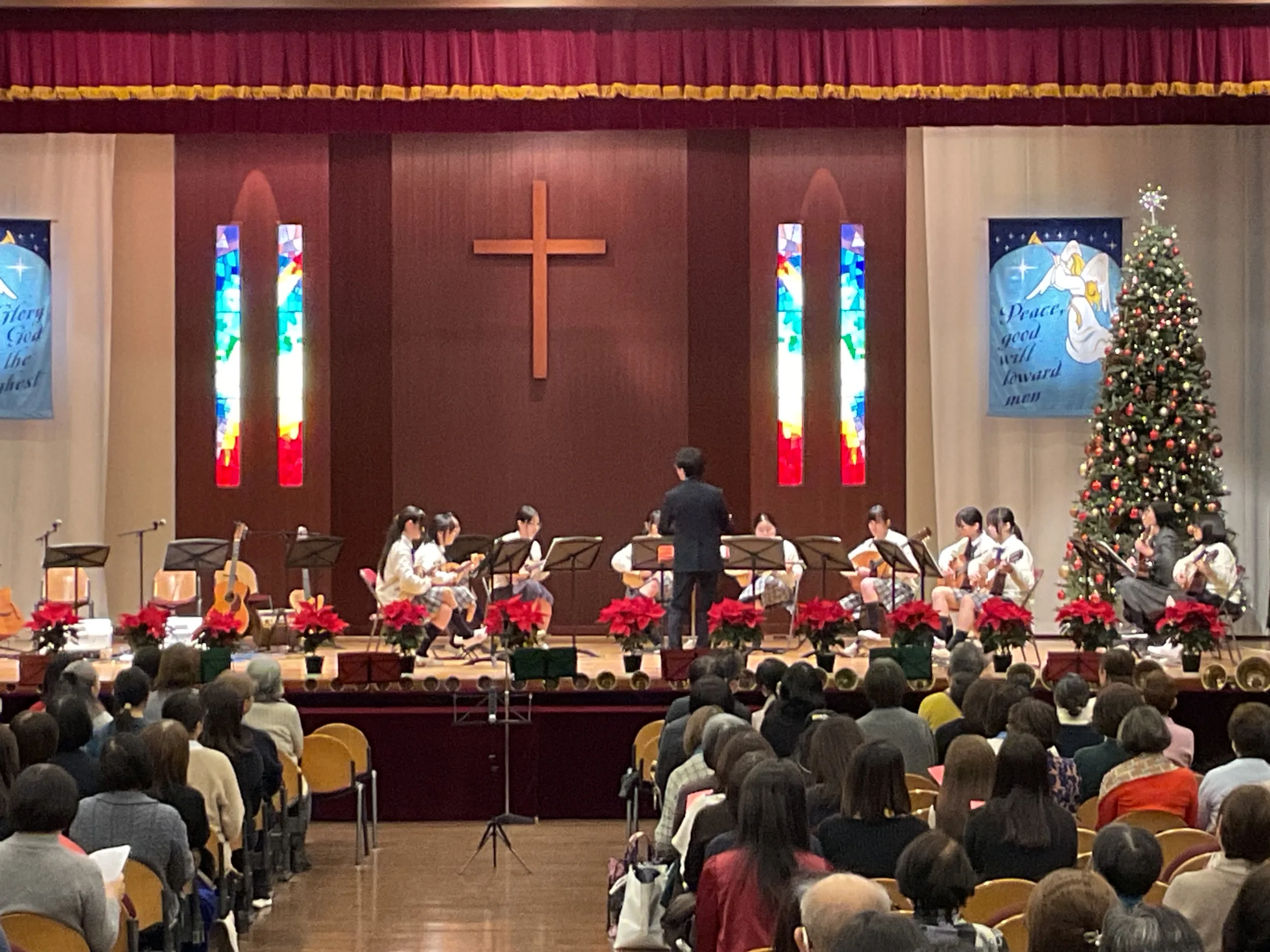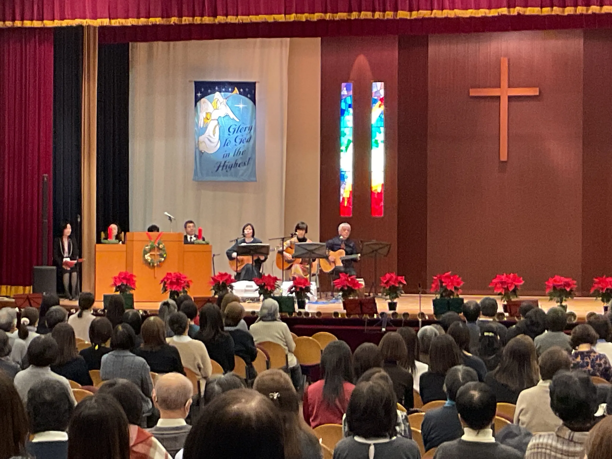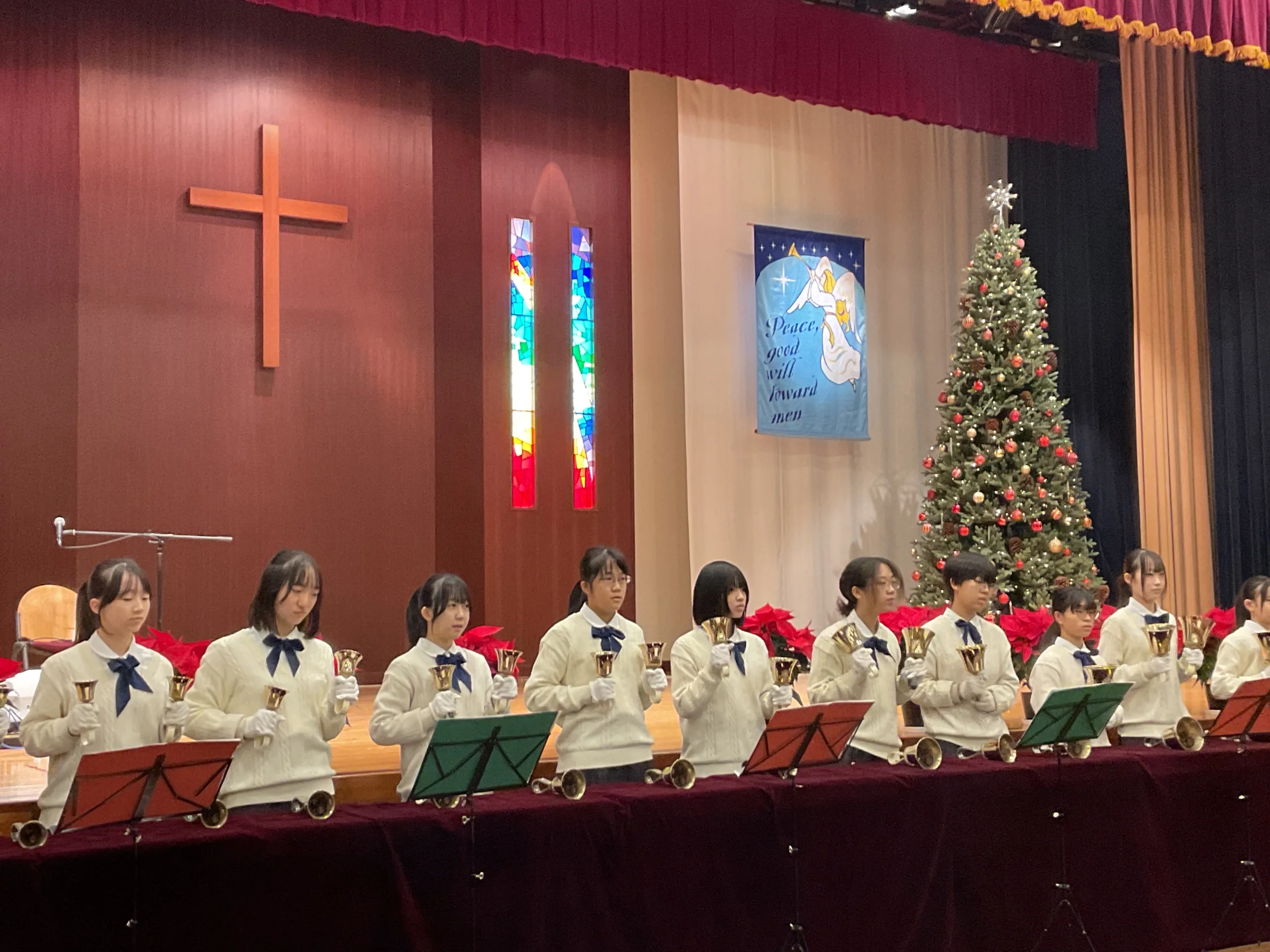 12/6土PM 谷口ホールにてクリスマス賛美礼拝が行われました。PTA、卒業生、在校生が三位一体となり、歌声や楽器をもって神様を賛美する礼拝です。今年も聖歌隊を始めとする音楽系クラブが入念な準備で臨んでくれました。恒例の教職員賛美やハレルヤコーラスも温かい雰囲気の中で行われ、オリーブによる三曲の賛美も心洗われる美しさでした。終了後はラウンジにて茶話会が催され、思い出話に花が咲きました。安藤学院長のクリスマスメッセージを心に留め、本物のクリスマスに思いを寄せる12月でありますように。
